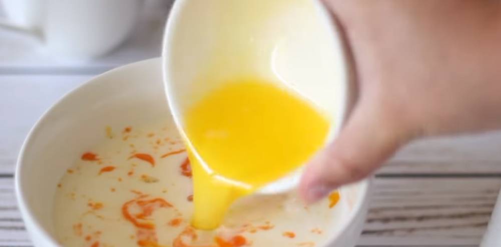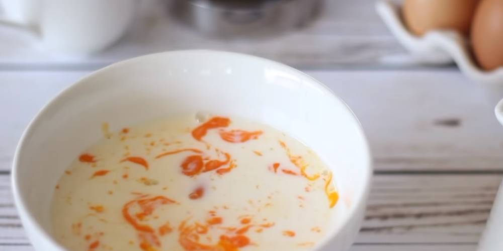 雞蛋敲入碗中,加入牛奶打散,並按照個人口味加入糖攪拌融化。還可以按照個人口味,添加一點香草精。