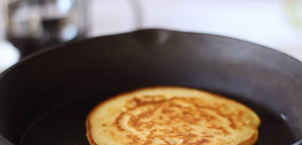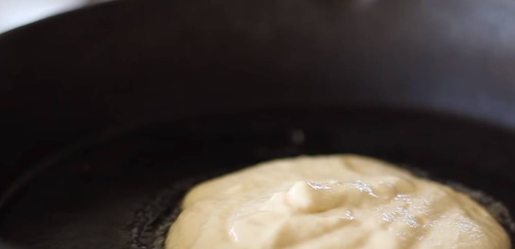 倒入一大勺松餅糊,小火加熱1分鐘。