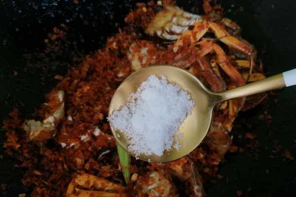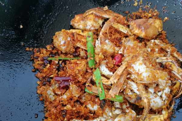 最後放入香葱葉翻炒一下,便可以出鍋了,螃蟹這樣做,3斤都不够吃,太香了,尤其是裡邊的麵包糠和蒜末,焦香酥脆,螃蟹塊也是香辣味鮮,9月吃正當季,比猪肉還便宜,學會了趕快做給家人來吃吧!