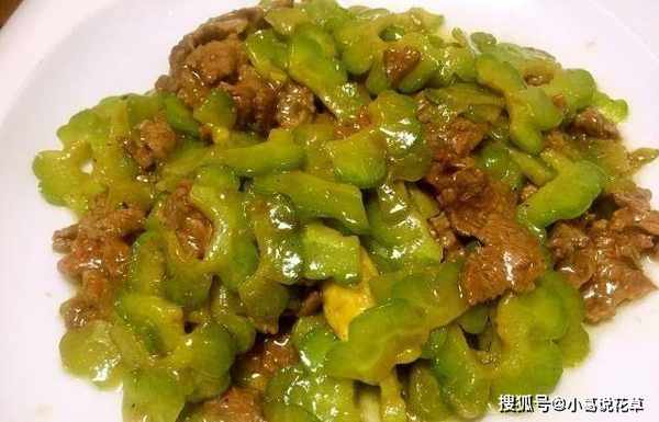 鍋中加入適量食用油,油燒熱後放入牛肉翻炒。牛肉放入炸至變色後,迅速取出備用。這一步叫“滑鍋”,意思是牛肉炸好瞭,但又不會太老,口感和口感都好很多。將其洗凈放入鍋中,然後加熱並加入油。油熱後放入苦瓜炒熟。