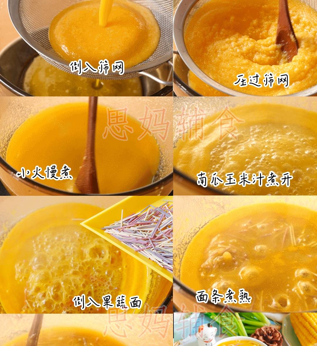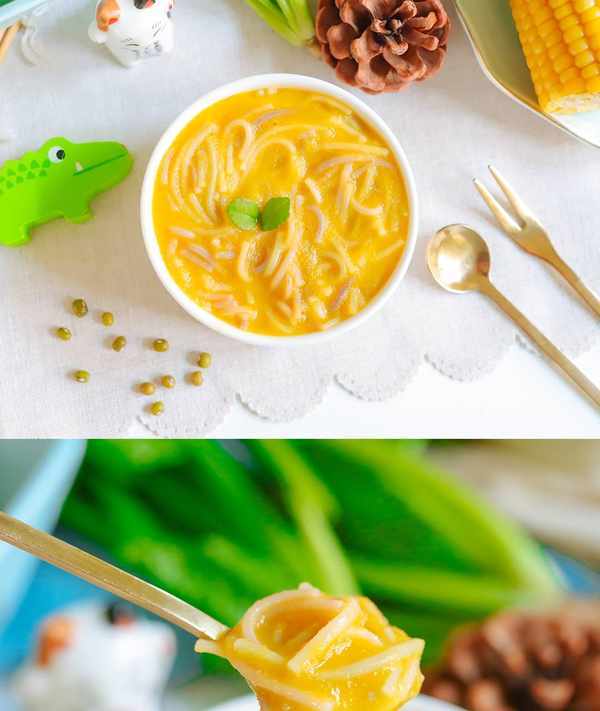 今天這碗面,配上香甜玉米南瓜泥,再加上蝦皮香菇粉提鮮,不加鹽糖寶寶就能吃光光。這一碗吃完,寶寶補充瞭維生素、粗纖維、鈣質。