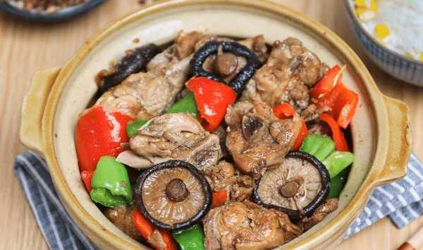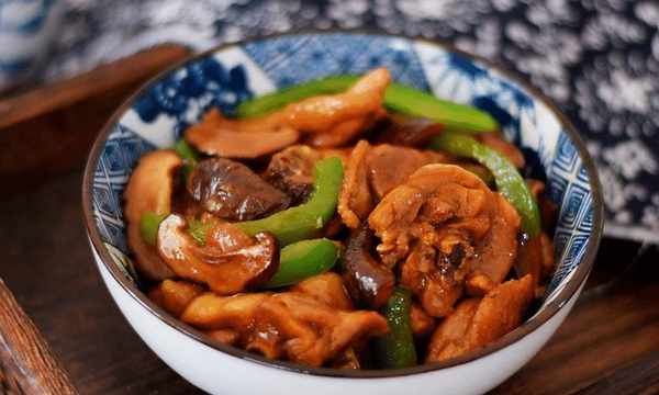 這道菜以雞腿和香菇為主料,配上蔥蒜八角,花椒料酒等為輔料以及糖,鹽,醬,油等,輔以燜制工藝,使香味相互勾連,互相滲透,延綿不絕。先將雞腿剁塊,大概相當於核桃大小,盛於碗中,用水浸泡30分鐘備用,主要是為瞭對機會進行更加細致的驚喜,同時提高裡面的水分含量,使雞塊更加柔美。