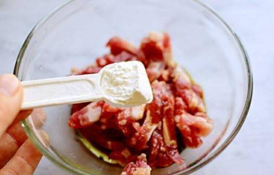 讓我們給你介紹一下這道菜的傳統做法。首先,切豬肉。記得把肥瘦分開。在瘦肉精中加入少量面粉、醬油和醬油,醃制5分鐘左右,使其新鮮。肥肉不需要再加工瞭。它可以放在一邊。