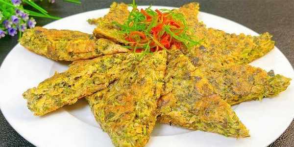 3、起鍋油熱後,再把雞蛋倒入鍋中。攤成一個雞蛋餅的形狀,盡量薄一些,然後開中小火慢煎,烙至兩面金黃,就可以出鍋瞭。香椿雞蛋餅就做好瞭。