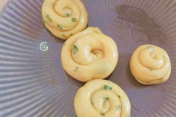 第3步,面團放在案板上多揉一會兒,揉至表面光滑,然後搓成長條,分成大小均等的小面劑。