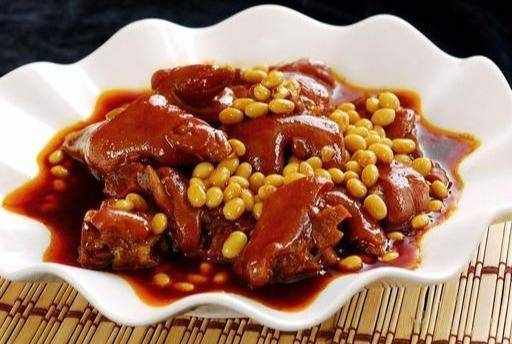 因為黃豆不是太好熟,所以要提前進行浸泡,豬蹄最好買那種已經清理幹凈的,先冷水下鍋綽一下,然後撈出空水備用。而想讓豬蹄看起來非常美觀,我們就需要用到冰糖,鍋裡不放油讓冰糖融化,之後就可以放豬蹄瞭,接下來就很簡單瞭,清水以及各種 調料還有泡好的黃豆都一下子加入到裡邊,大概煮一個半小時,收汁出鍋即可。