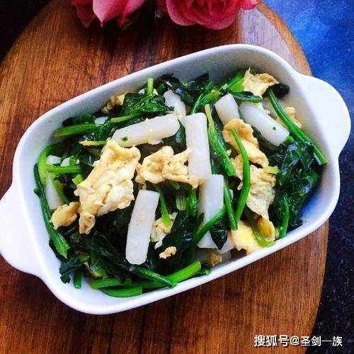 食材菠菜、雞蛋、年糕、鹽、料酒做法1、年糕用清水沖洗一下,切成薄片。2、鍋中放入清水加三克鹽和少許食用油,大火燒開,放入菠菜後立馬關火。3、焯水半分鐘後撈出過水並瀝幹水分。4、雞蛋磕入碗中,加半湯匙料酒和半湯匙溫水,攪拌均勻。5、熱鍋熱油倒入蛋液。6、稍作凝固翻炒均勻,並放入年糕片,加三克鹽翻炒均勻。7、放入菠菜大火翻炒均勻即可。菠菜雞蛋湯