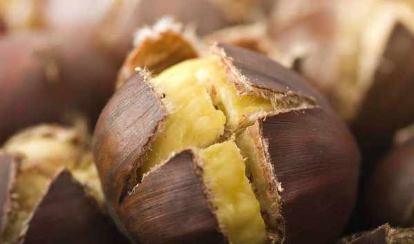 2、鍋做旺火上添加多量油,油熱至七成時投入雞塊炸至上色撈出,板栗投入六成熱的油中炸至深紅色時撈出。