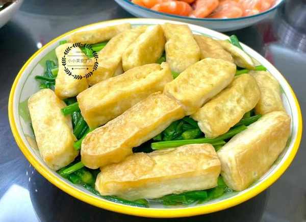 韭菜,當季的時令蔬菜,搭配豆腐炒制出來,鮮香可口。豆腐需要提前切塊,放入油鍋中煎至兩面金黃後盛出,然後油鍋中倒入韭菜,翻炒變軟後加入適量食鹽拌勻,然後放入煎好的豆腐,淋入少許清水燉煮兩三分鐘即可。