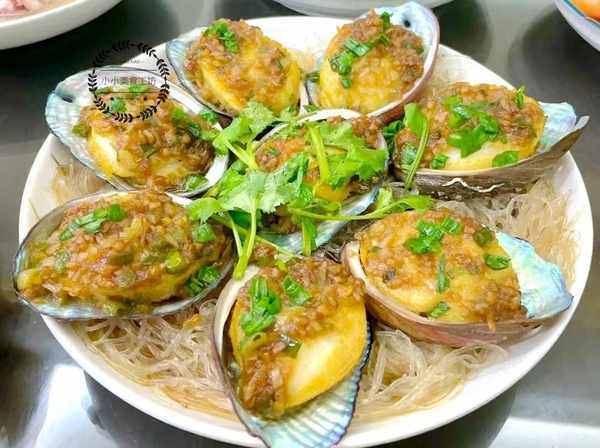 蒜蓉粉絲蒸鮑魚,看上去就很誘人。將小鮑魚處理幹凈,然後在鮑魚肉上劃幾刀方便入味,接著將粉絲放入開水中浸泡變軟,然後一部分粉絲放入盤底,一部分粉絲放入鮑魚肉上,接著準備蒜蓉,將大蒜切碎放入油鍋中,全程小火炸香,然後加入食鹽,雞精,白糖和蠔油翻拌均勻,將炒好的蒜蓉鋪在粉絲上,放入蒸屜隔水蒸8-10分鐘。出鍋後淋上蒸魚豉油,撒上蔥花淋入熱油即可。