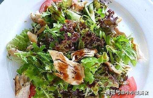 2.紫生菜撕成小塊,西紅柿切塊,雞柳煮熟撕成小塊。