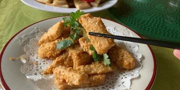 這是今年最新推出的新菜式。竹筍處理過後裹上生粉和生雞蛋液油炸定型,再加入碾碎的新鮮咸蛋黃一起翻炒。一口咬下去,咸蛋黃沙沙的口感和竹筍的清脆沖突又融合,回味無窮。