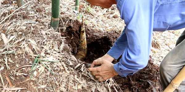 每年10月,正是秋風起的時候,種植戶會選取肥美的竹筍來培育新竹子。數月過後,竹筍會冒出一丁點到地面。這時,種植戶會往竹子附近填土,盡可能讓“筍身”埋在地下,這樣培育出來的筍口味更佳。