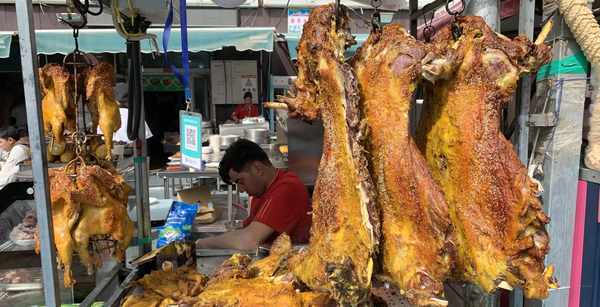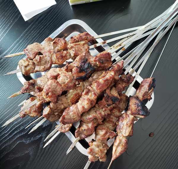 癸卯歲春閏二月,孔雀河畔春暖花開。在庫爾勒市鐵克其美食街上,又一次吃到瞭正宗原始的烤羊肉烤排骨,都是純新鮮羊肉,現串現烤,純木炭燒烤,無任何調料加工,真正的原始原味,而且肉塊大,肉質鮮嫩,特別是中間夾烤的一塊羊脂,烤得焦黃,一口下去,滿嘴流香。