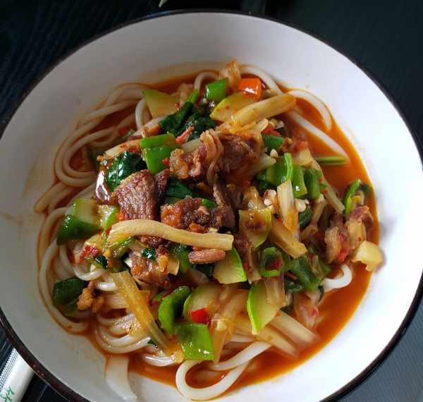 與烤肉搭配的的主食,非拌面莫屬,再來一碗正宗的原汁原味的傢常拉條子,滑溜筋道,色香味俱全,加上一碗南疆的藥茶,一下子消解瞭油膩,胃口大開,吃瞭還想吃。