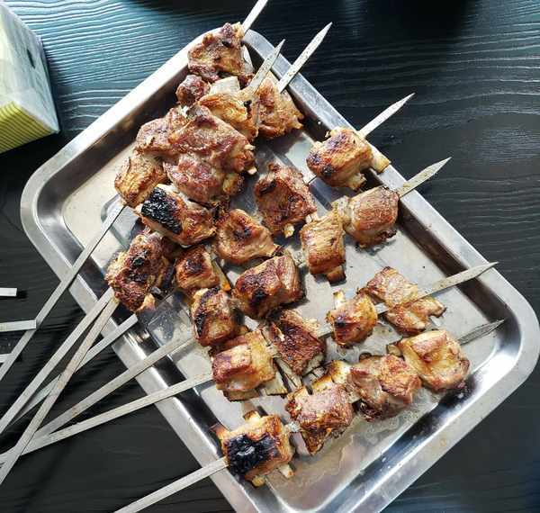 我們最常見的就是木炭烤制的原汁原味的,沒有任何調料加工的烤肉。現如今,在烏魯木齊吃到的都是經過加工、醃制和各種調料調配,而且是電爐或電烤箱裡烤制的,個別的可以碰到有無煙煤燒烤的,但都已失去原始烤肉香味瞭。
