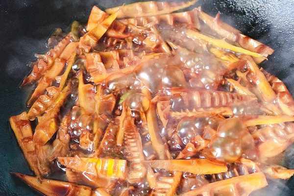 6、春筍中放完喜歡的調料翻炒均勻,添加少許開水後大火煮開,蓋上鍋蓋燜煮5分鐘左右,讓春筍充分入味兒,收幹湯汁兒就可以盛出裝盤瞭,出鍋前丟幾根碧綠的蔥段點綴一下,脆嫩鮮香的油燜春筍就做好瞭。怎麼樣?做法是不是超簡單?聰明如你,一看就會。有時間也為傢人做一道愛心牌的【油燜春筍】吧,再簡單的食材浸潤瞭愛的味道也會變得更加美味哦!
