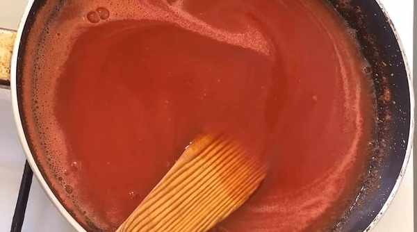 西紅柿榨成汁後,將西紅柿汁倒入鍋中煮。煮的時候,取一個碗調一些玉米糊,然後倒入鍋裡一起煮,再加入適量的冰糖。冰糖的量可以根據自己的需要來調整。如果你想讓它更甜,就多加一點,繼續攪拌。