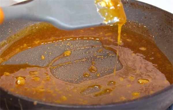 5.這時候可以熬糖稀瞭,我這個糖是300g,鍋裡不用放油,直接放白糖,全程開小火,把這個白糖熬成糖稀,一直炒成這樣的焦糖色,都化成糖稀瞭。