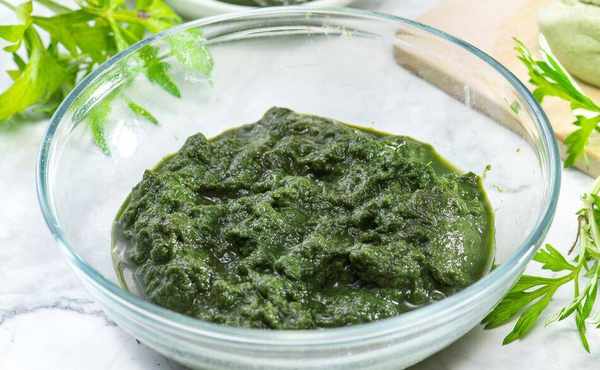 2、加上一點小蘇打,可以保證艾葉翠綠,焯水後撈出,過完涼水後將艾葉倒入破壁機,加1000g清水,打成汁。把艾草汁過濾後,倒出來備用。糯米粉、白糖、食用油,都混合到一起。