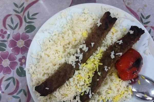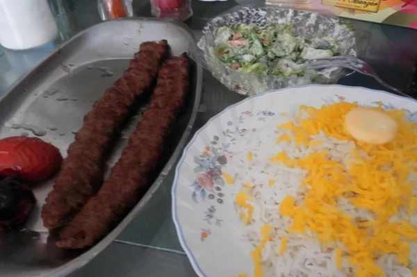 伊朗的菜肴以燒烤為主,燒烤叫"恰包卟"(法爾斯拼音Kabab)。烤雞腿、烤雞翅、烤魚、烤羊排、烤西紅柿。伊朗餐館有一道特別的菜肴叫"庫必帶"(法爾斯拼音Kobide),是將牛肉、羊肉用絞肉機絞碎,然後穿在一根不銹鋼扁鐵片上放進爐膛裡烤熟。對於我們這些來自魚米之鄉的中國人進伊朗餐館一般都是點烤雞腿飯或"庫必帶"飯。記得我第一次去Aligudarz(阿裡古達茲)鎮進伊朗餐館吃飯,同行的小劉怕我不習慣"庫必帶"飯,建議我點烤雞腿飯。吃完烤雞腿飯,我還是嘗瞭一點"庫必帶"。第二次出差阿裡古達茲鎮,在伊朗餐館就餐,一盤"庫必帶"飯,一碗蔬菜沙拉,半個生洋蔥,幾個烤西紅柿。伊朗司機索裡馬裡則點瞭他愛吃的"坦奴尼",一碟烤雞腿、半個生洋蔥、一碗蔬菜沙拉、幾個烤西紅柿。索裡馬裡撕開一塊大餅包上生洋蔥就嚼瞭起來。吃生洋蔥既能補充維生素又能防癌,是餐桌上必備的蔬菜。伊朗是禁酒的國傢,不必擔心司機會醉酒駕駛,所以飲料也是逢餐必備的。