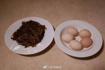食材準備 主料:香椿半斤、雞蛋5個 調料:鹽、雞粉