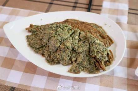 4、起鍋滑油,再放適量油燒熱,倒入香椿雞蛋,做成蛋餅狀。