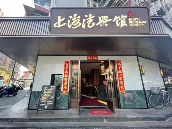 位於上海中華路上的老字號上海德興館,關於青團的介紹放置在門前醒目位置。 (德興館供圖)