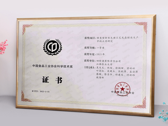 其二是產學研深入融合。四特酒與天津科技大學、南昌大學、江西農業大學等高等院校,積極開展科研合作項目,完成瞭《基於DMAIC控制白酒中氨基甲酸乙酯的研究與應用》《特香型新型大曲工藝及在釀造生產中的應用研究》《不同大米釀造特香型白酒的研究》等多個省級重點科研項目。2018年至今,四特酒共申請商標73個、著作權32項,獲得專利44項(其中4項發明專利),榮獲行業、省級科技獎十餘項。