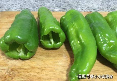 制作過程:第一步準備青椒適量,仔細清洗幹凈,如果不吃辣,青椒去根去籽。按照這個方法依次處理;