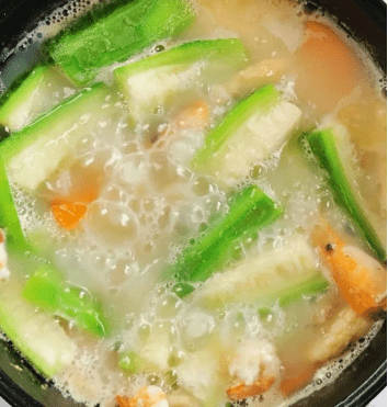 7. 最後放入絲瓜、蝦身和適量鹽。