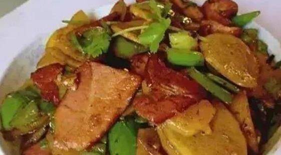 3.出鍋後加青蒜調味。愛吃辣椒者可加幹紅辣椒熗鍋,氣質更香。臘肉本身有咸味,老抽與鹽適量。