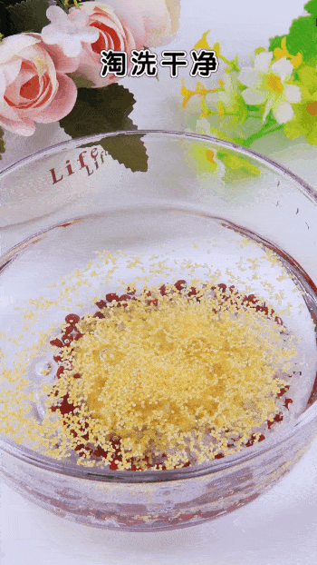 1,提前把紅豆浸泡上,泡好之後和大米、小米一起清洗幹凈。
