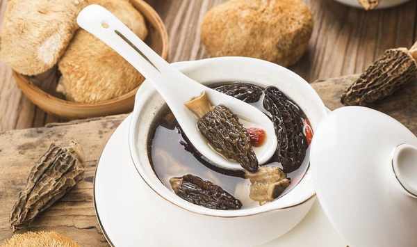 材料:羊肚菌(幹品)6個,豬排骨300克,蓮子30克,鮮淮山30克,芡實20克,薏米20克,紅棗3枚,生薑5片,食鹽適量。