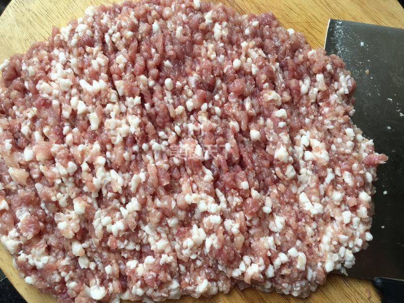 2、獅子頭的肉要切得細一點,切得粗一點,用小肉丁代替肉末,這樣吃起來軟滑。