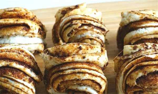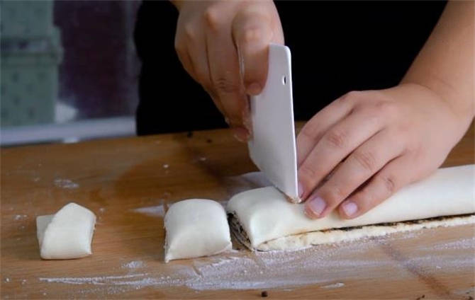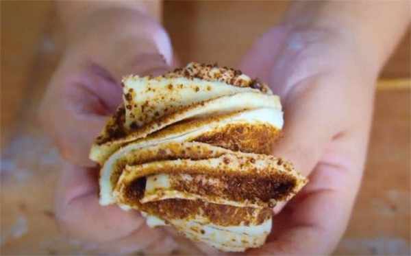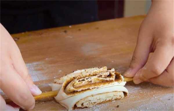 8.反手翻轉一圈,這個花卷就做好瞭,好看吧,你看這個層次。