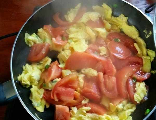 然後準備一個幹凈的小碗,將雞蛋打碎。鍋裡倒入適量的食用油,油熱之後放入雞蛋進行翻炒。將雞蛋炒熟之後盛出備用。再往鍋裡倒入適量的食用油,油熱之後加入蔥花爆香,然後再加入番茄進行翻炒。最後,再加入提前炒好的雞蛋,翻炒均勻以後就可以出鍋瞭。