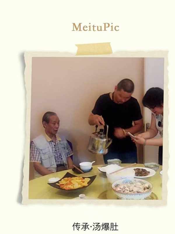 以上菜譜見於1965年輕工業出版社出版的《中國名菜譜》,在民國雲南省主席龍雲司廚解德坤大師的菜譜裡也有一道菜名“竹筍湯爆肚”的菜品做法上與此菜譜相同,配菜加上瞭雲南山珍竹筍。解德坤大師1941年在昆明“海棠春酒樓”主勺,此菜是海棠春酒樓”酒席菜品之一,根據根據羅養儒先生《雲南掌故全本》談談往昔昆明人口福上之享受記載“海棠春酒樓”為外省人來昆開設,查1965年輕工業出版社出版的《中國名菜譜》廣州大同酒傢有一道“上湯泡肚仁”做法一致,分析“湯爆肚頭”這道菜品應該是清末由外省廚師帶入昆明,在昆明配菜又加入冬菇、竹筍、火腿等形成瞭用山珍提鮮的滇味菜肴。