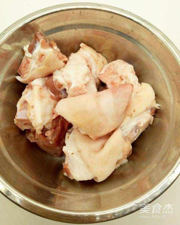 3.把豬腳上的毛去掉,切成小塊;將冷水放入鍋中,然後將其煮沸;