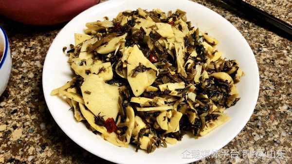 【食材】:春筍 適量、雪菜 適量、白糖 1小勺、鹽 少許、雞精 1小勺、小米辣 少許