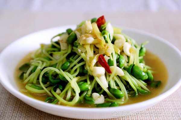 做法:1.準備適量的新鮮豌豆苗,把它清洗幹凈,在炒鍋裡加入清水,把水燒開之後放入豌豆苗,焯水兩分鐘撈出來,放入清水中過涼,然後撈出控水擺入盤中。