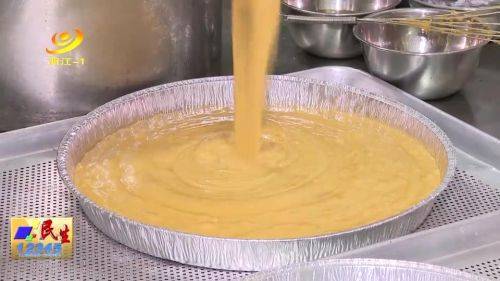 在陽西縣城的一傢糕點店,糕點師傅正在制作發糕。他按比例依次在鍋中放入紅糖粉、水、面粉、木薯淀粉、泡打粉、酵母、食用油等,攪拌成細膩的面糊狀。面糊醒發好後,再用工具翻拌,把面糊裡的空氣排出來,然後把面糊倒進一個個大圓盤裡,放入蒸爐裡蒸40分鐘左右,發糕就出爐瞭。糕點師傅告訴記者,發糕配料考究,成品呈金黃色,聞之鮮香撲鼻、食之甜而不膩、糯而不粘,深受顧客喜歡。