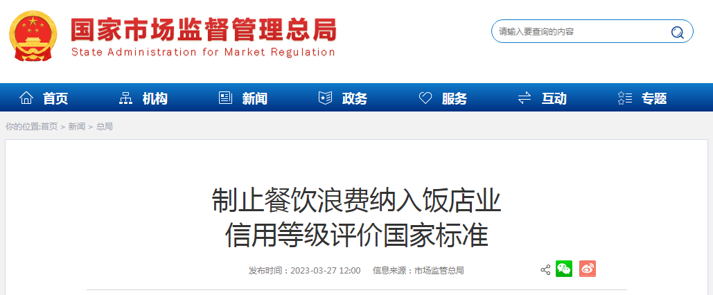 據國傢市場監督管理總局官方微博消息,近日,市場監管總局(標準委)批準發佈《飯店業信用等級評價規范》。