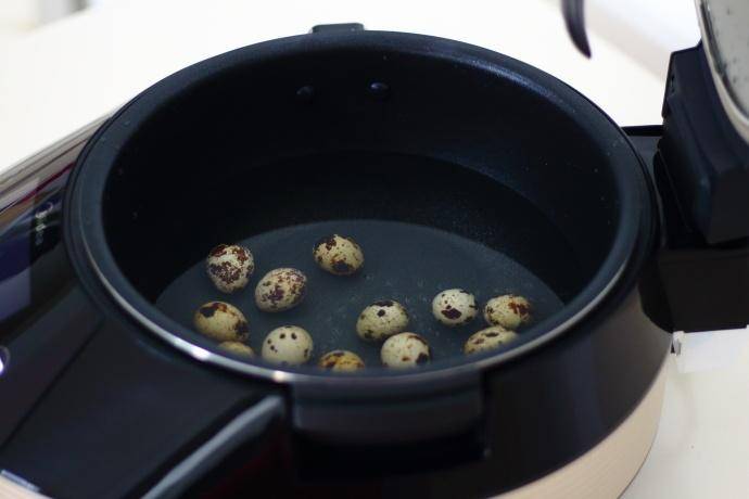 2.蓋上油炸機器人的蓋子,打開電源,按住“確定”按鈕,將烹飪時間設置為“10分鐘”,攪拌方式設置為“不攪拌”。設置時間和攪拌方法後,將功率設置為800瓦。所有設置完成後,剩下的工作將移交給油炸機器人完成。傢裡沒有這類廚具的朋友可以直接下鍋煮鵪鶉蛋或燉菜;
