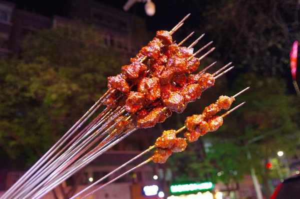 羊肉串,看著都是現串的肉,吃起來果然肉汁多多