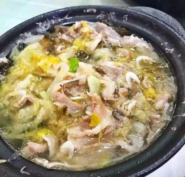 洗幹凈鍋後加入1勺色拉油,放入花椒 蔥薑蒜 蠔油煸炒一下,倒入適量的清洗,加入胡椒粉1勺 鹽1勺 雞精1勺和小米辣,再把酸菜放入鍋中,開中火燉煮一會。放入焯好的肥羊片和細粉條,稍煮幾分鐘後,淋入少許香油撒上香蔥段,就可以出鍋瞭。