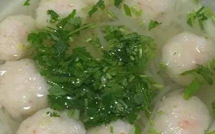 攪拌好的蝦泥,用筷子做成蝦丸子,劃入鍋中煮開 ,焯燙蝦丸變色後。