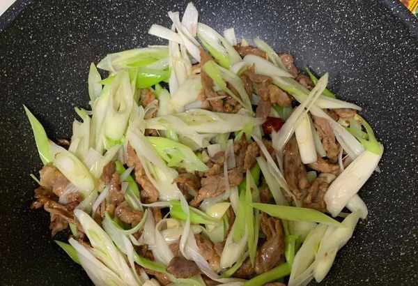 3、大蔥要炒到微微變蔫,這時候的大蔥辛辣味基本都被高溫炒沒瞭,留下的隻有蔥香味;