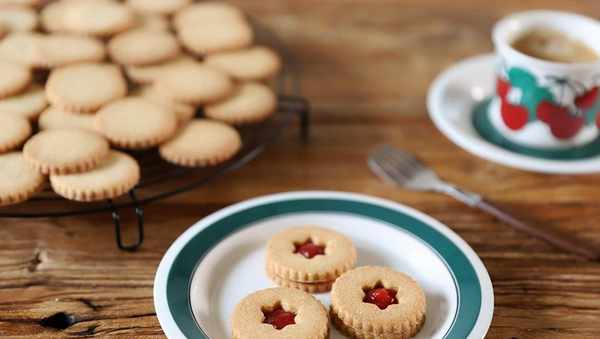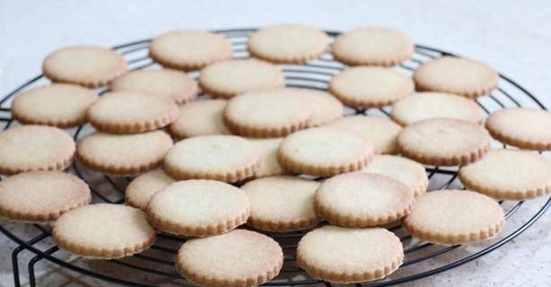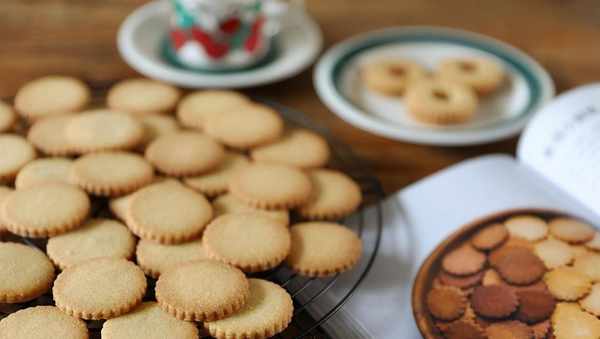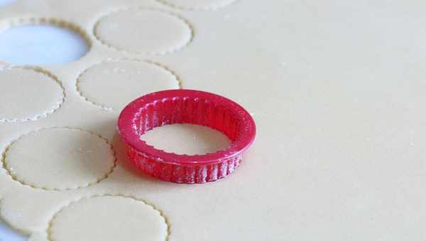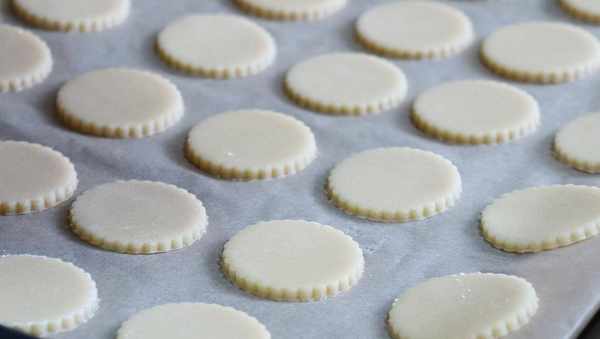 將它搟開成厚0.33公分的片面,用直徑5公分的圓形餅幹模切出一個個圓形。