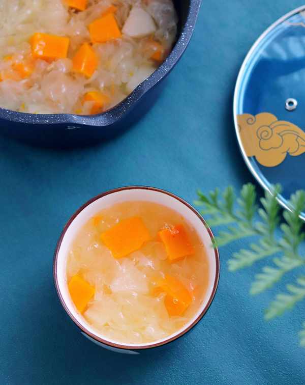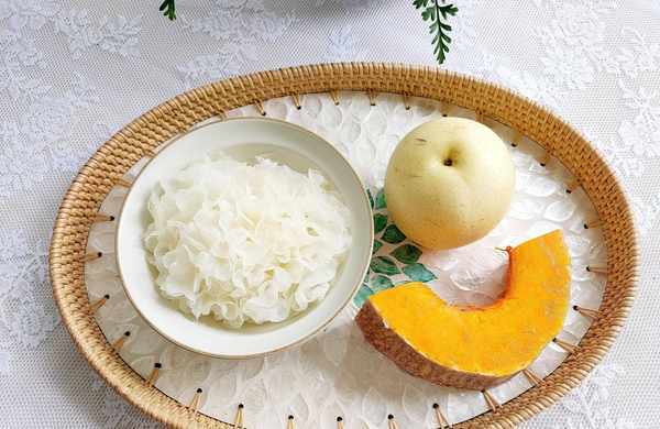 銀耳,富有天然植物性膠質,可滋陰潤肺。南瓜含豐富的維生素C,以及能轉化為維生素A的類胡蘿卜素,維生素C和維生素A都能提升人體的免疫力,維生素A還有抗呼吸系統感染作用,而南瓜所含的多糖是一種非特異性免疫增強劑,也能提高機體免疫力。梨多汁,甜中帶酸,含有多種維生素、纖維素,既能生吃,也可以煮水或是煲湯後食用,潤肺止咳,所以雪梨銀耳湯是傢庭必備的滋養甜品。
